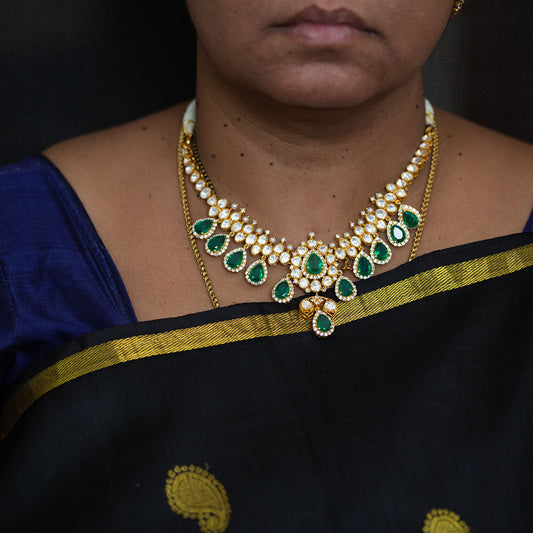 DVNYTY 925 Silver Moissanite Short Necklace with Dublate Emeralds