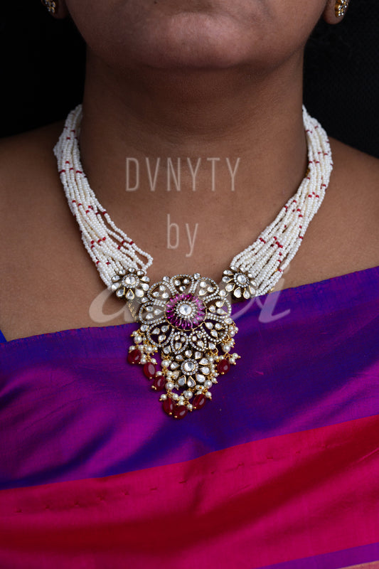 DVNYTY 925 Silver Red Kundan Pearls Choker