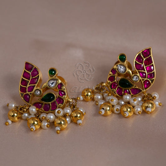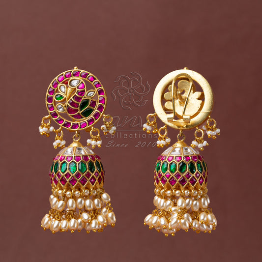Peacock Jhumkis with pearl hangings