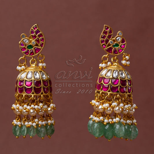 XL jadau kundan Jhumkas with small bead hanging