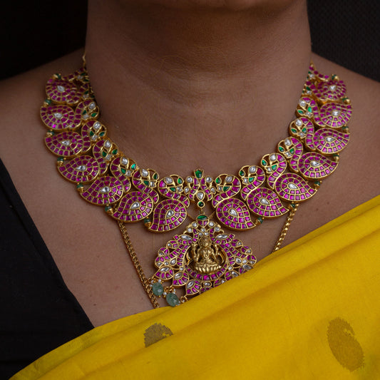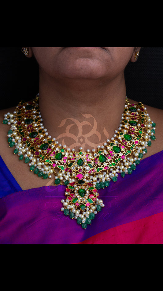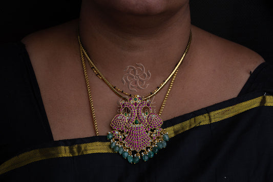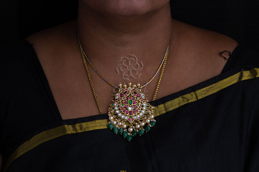 Dual Tone Rope Chain with Jadau Kundan Pendant with Pearls & Russian Beads