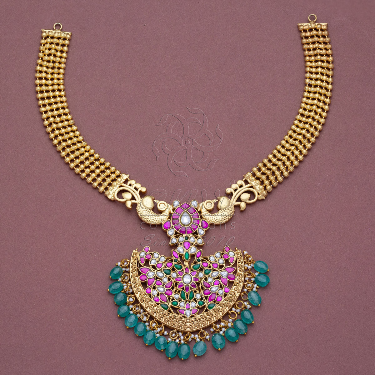 Multi Kundan choker with drop pendant with strawberry bead hangings