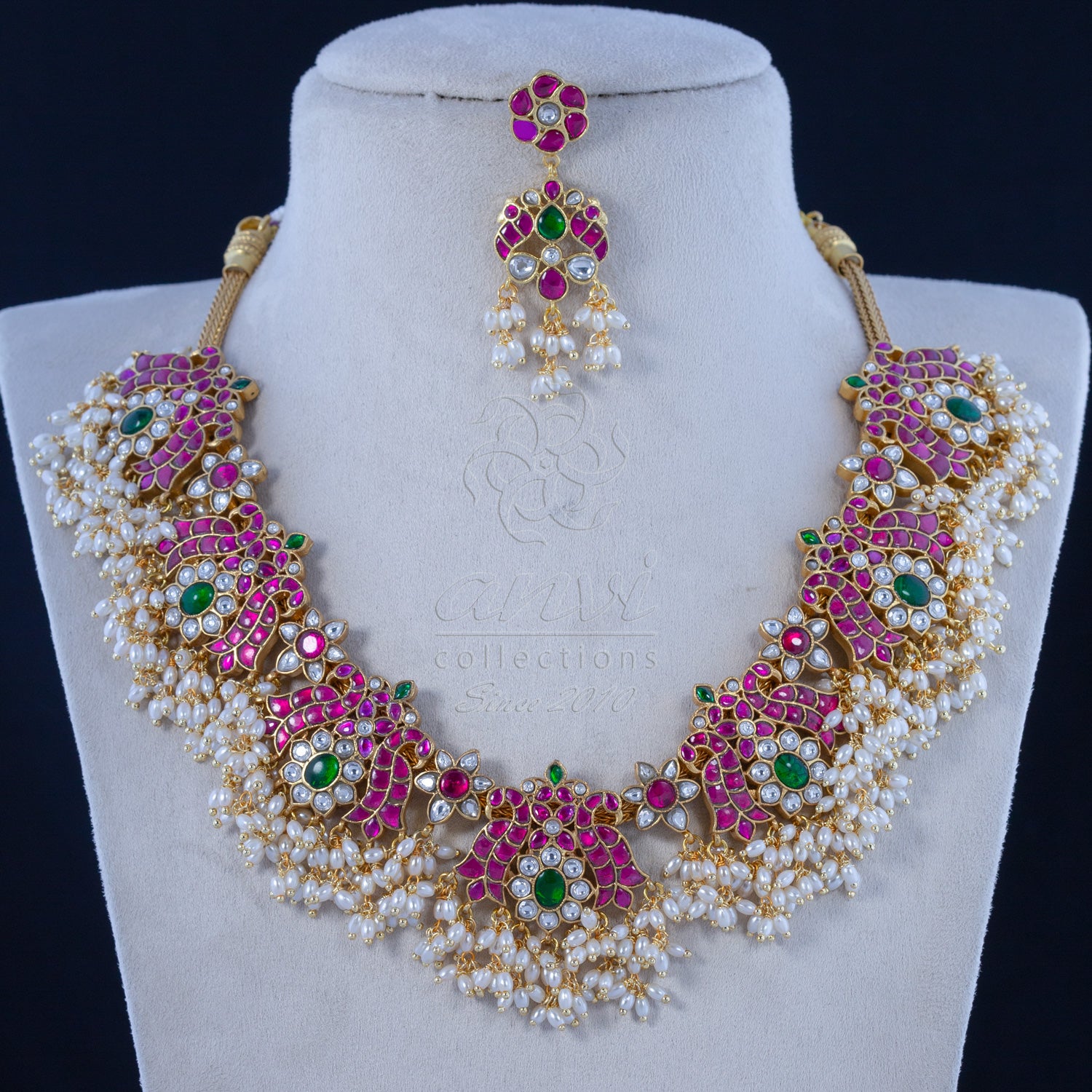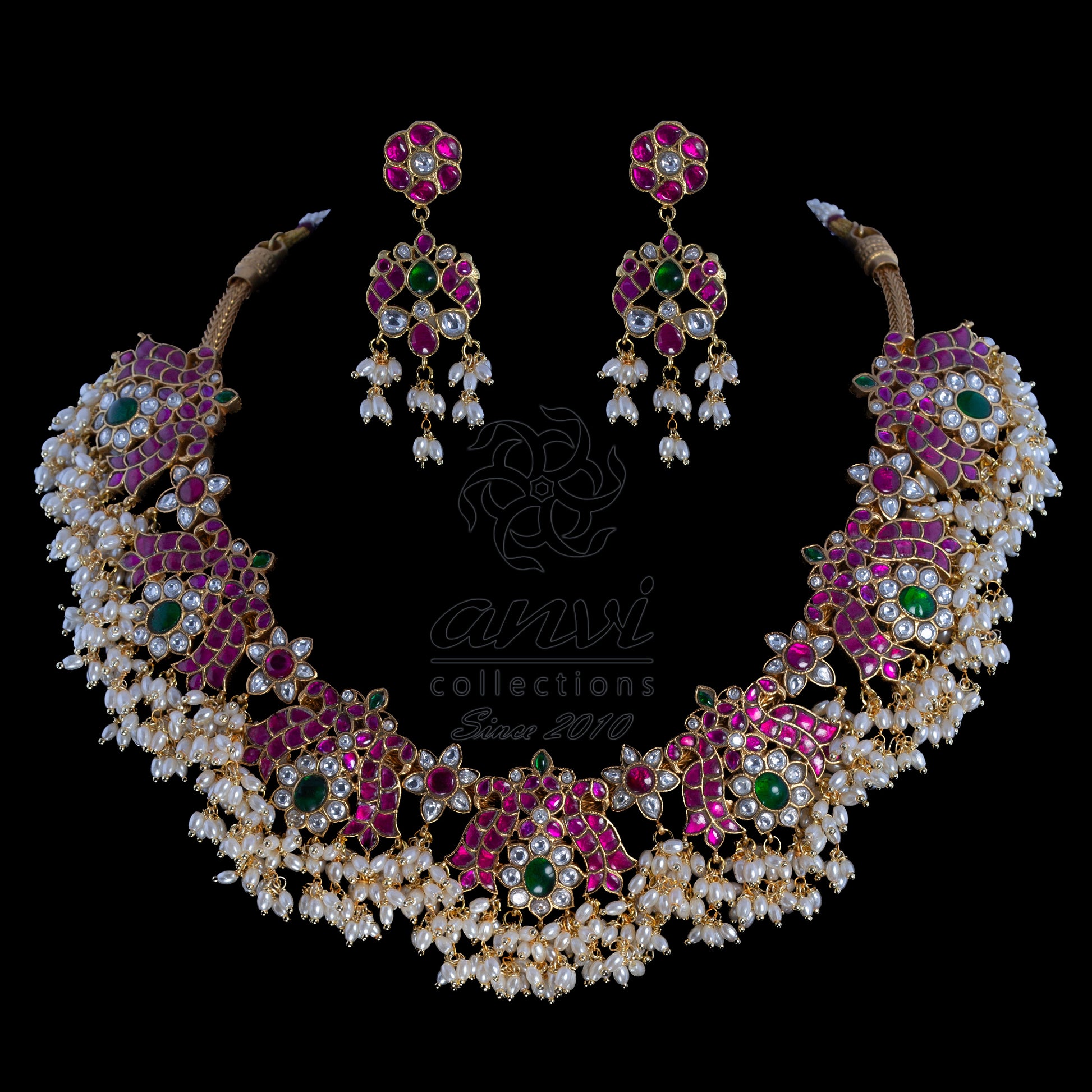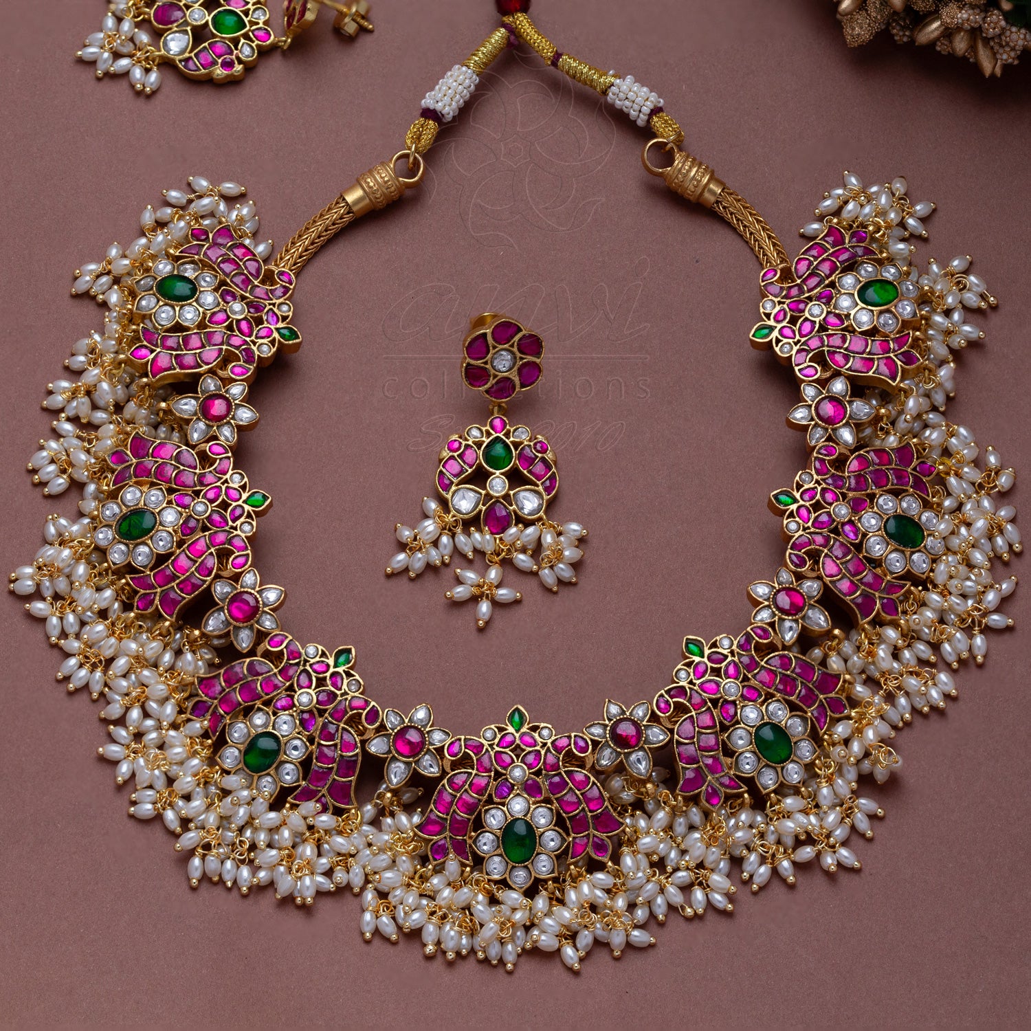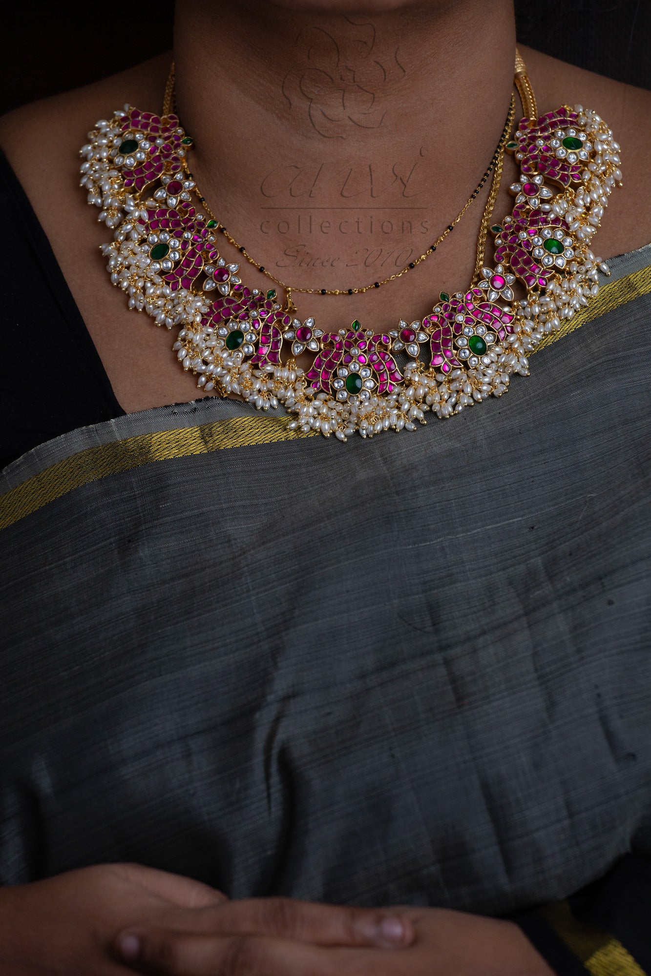 Lotus Guttapusala Choker style neckpiece with Earrings